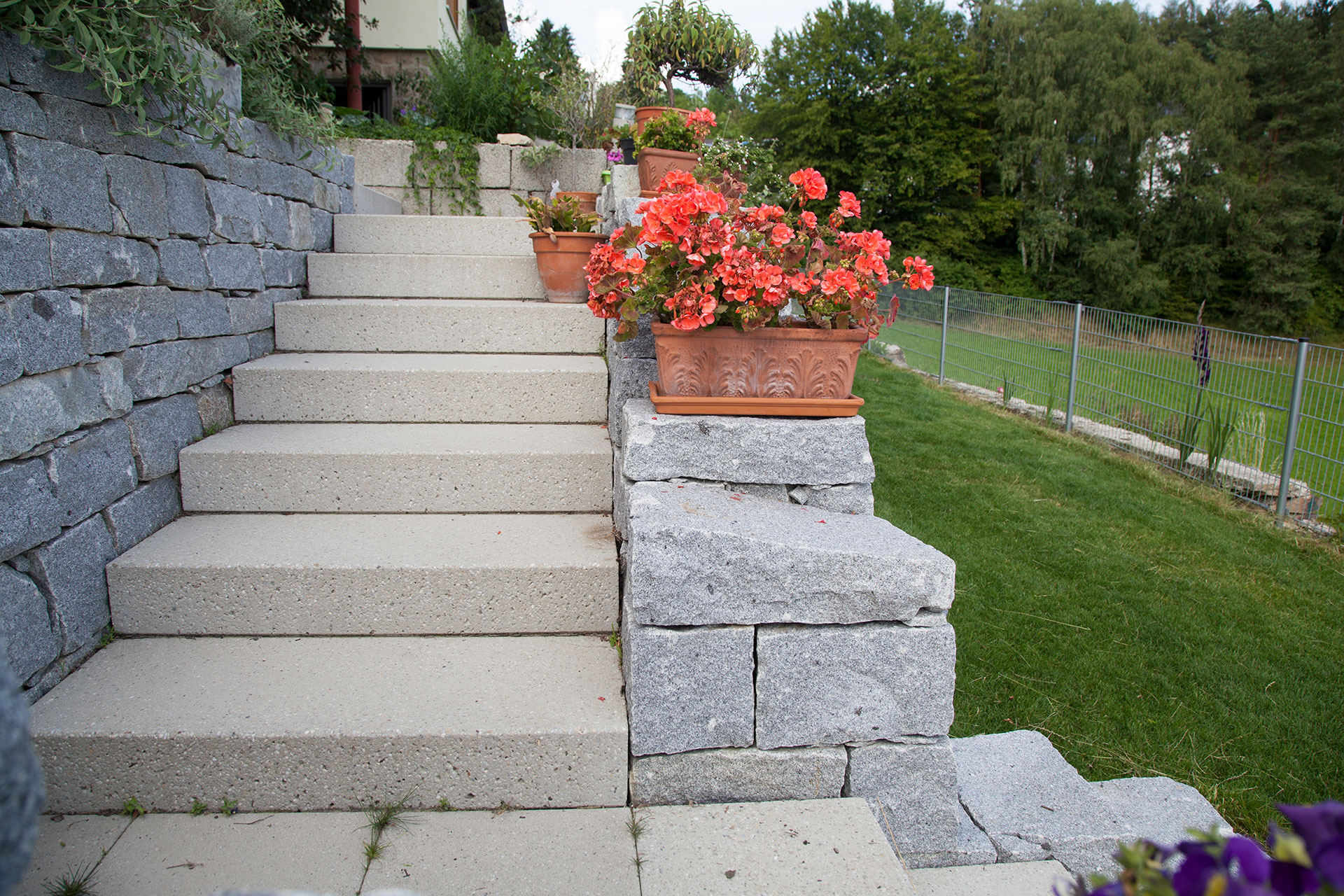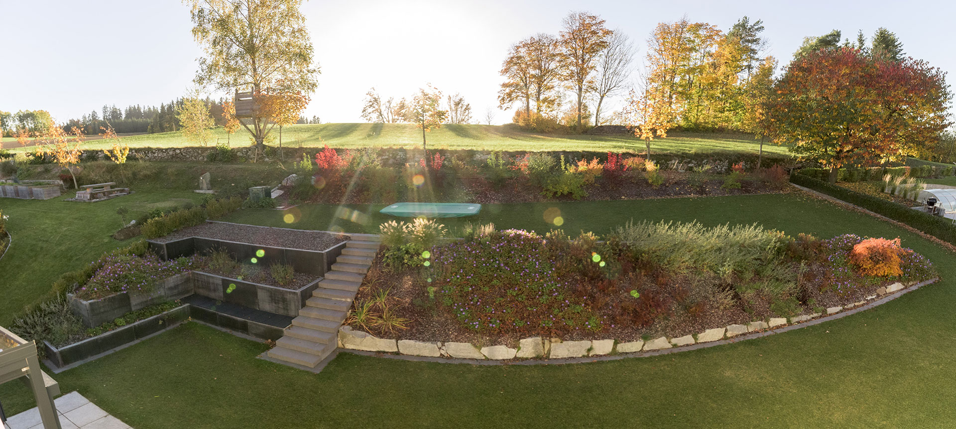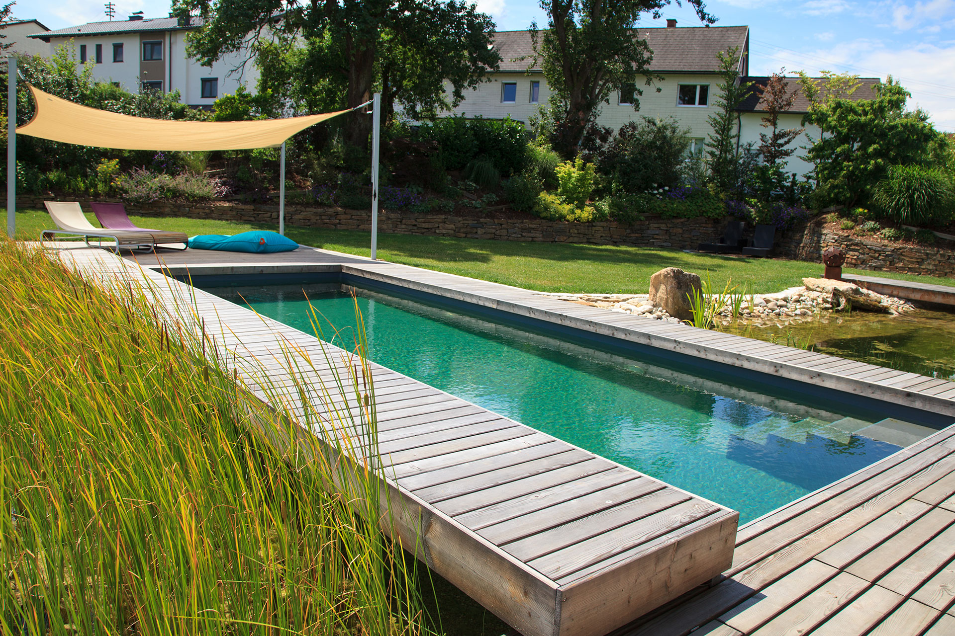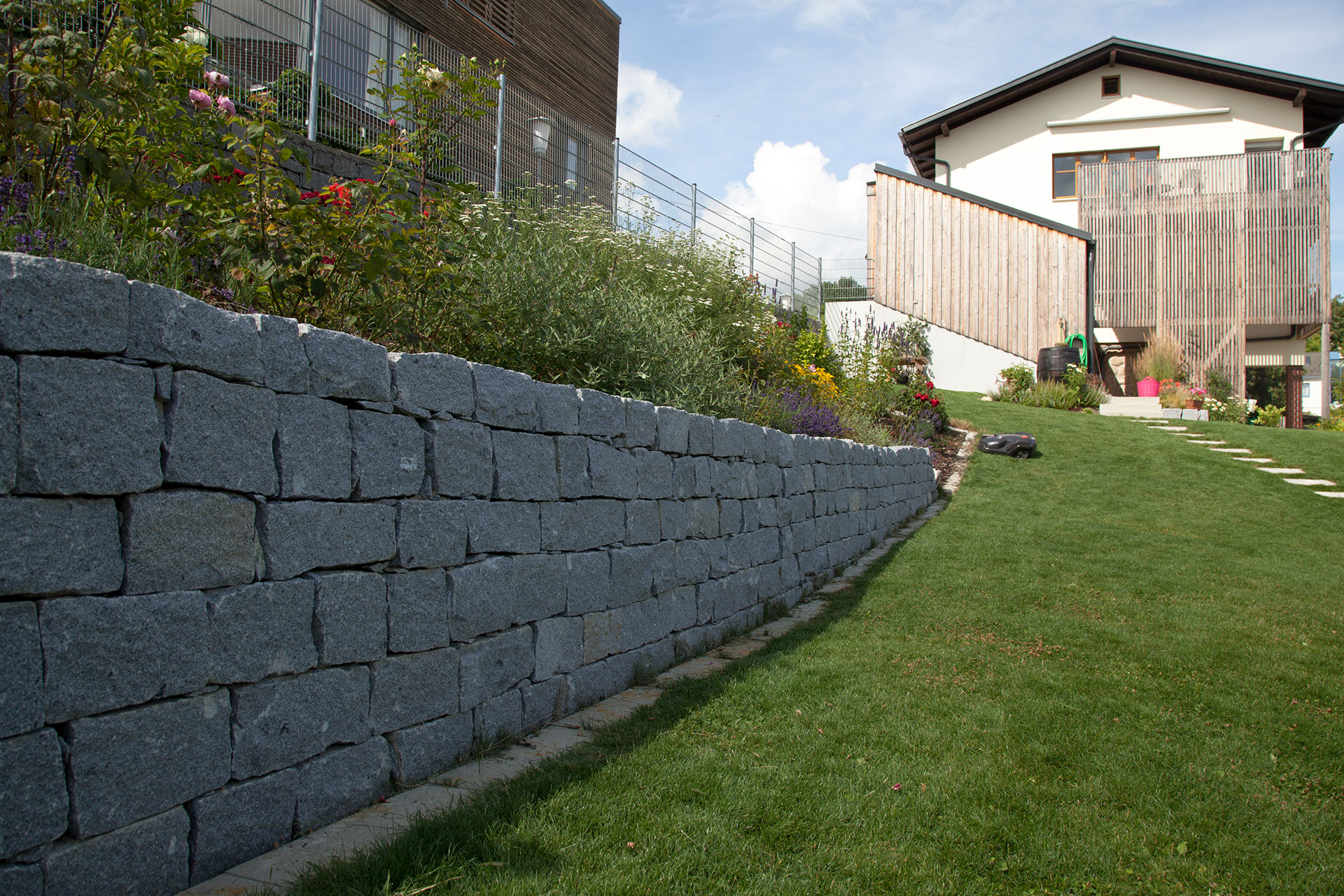 Planung, Geländemodellierungen mit Bagger, Trockensteinmauerbau, Plattenbeläge, sämtliche Pflasterarbeiten mit Natur- und Betonstein, Schwimmteich- und Naturpoolbau, Pflanzarbeiten, Rasenarbeiten.